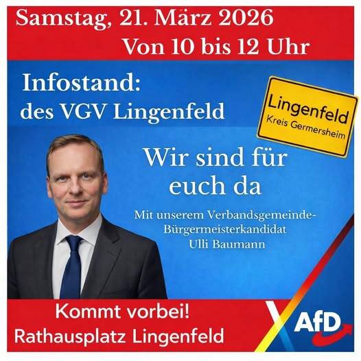 „Wir haben heute ( 08.02 ) eine sehr gute Stimmung am Infostand gehabt und viele interessante Gespräche mit Bürgern aus Germersheim und die Umgebung gehabt, sagte der AfD-Stadtverbandsvorsitzende Albert Breiniger.
